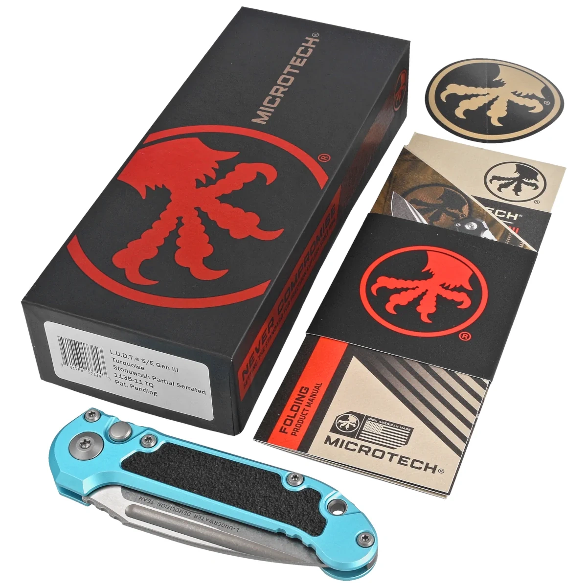 Nóż automatyczny Microtech LUDT Gen III S/E Turquoise Aluminium, Stonewashed P/S M390MK by Tony Marfione (1135-11TQ)