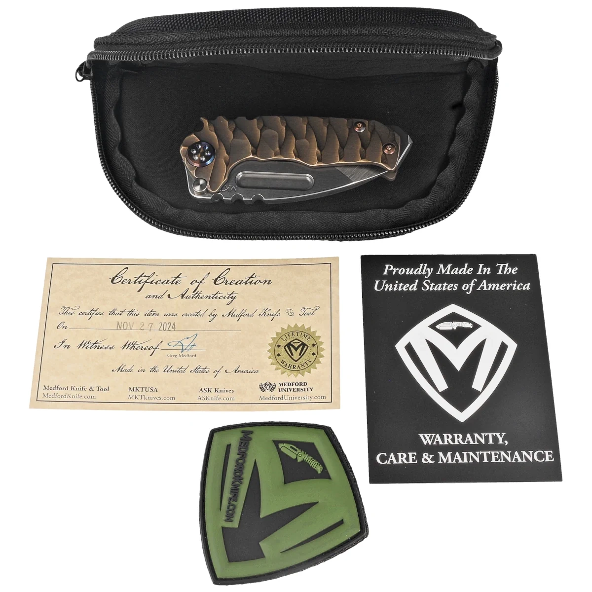 Greg Medford, założyciel Medford Knife and Tool, to amerykański rzemieślnik i patriota z Arizony. Jego grecko-irlandzkie korzenie i wartości, które wpoiła mu rodzina, takie jak pragmatyzm i ciężka praca kształtowały jego drogę innowacyjnego projektanta. Jako były żołnierz piechoty morskiej, pilot i mistrz sztuk walki, Greg łączy w swoich projektach amerykańską pragmatyczność, wolność i zaawansowaną technologię. Firma, założona w 2010 roku, słynie z ręcznie robionych, trwałych narzędzi taktycznych i noży, w tym znanego modelu Praetorian