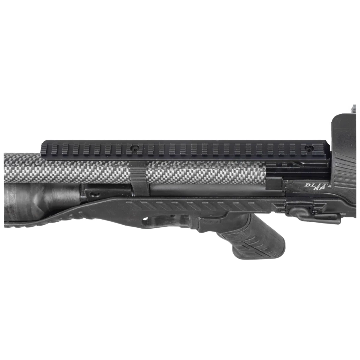 - Blitz BP Carbon wiatrówka PCP w wersji bullpup z system FullAuto i SemiAuto zapewniającymi automatyczne przeładowanie po każdorazowym naciśnięciu języka spustowego (wersja FAC) i szybkie oddawanie strzałów bez potrzeby zmiany linii celowania