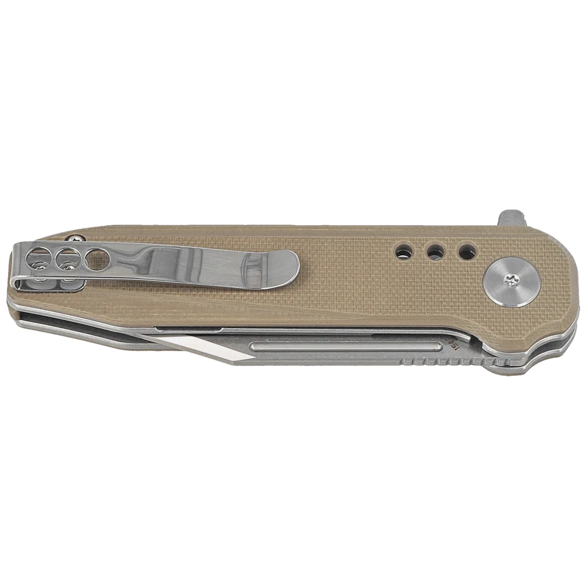 Syntax Beige G10, Stonewashed / Satinnóż składany do codziennego noszenia, zaprojektowany przez braci Setha i Teryla Toddów z TKT "Todd Knife and Tool". Super płynne rozkładanie ostrza dzięki ceramicznym łożyskom kulkowym i szybkiej płetwie flippera, które zabezpieczono blokadą liner lock, która jest łatwa w obsłudze. Okładziny rękojeści z kompozytu G10, głownia ze sprawdzonej stali CPM 154CM, a wszystko to w znakomitej cenie i jakości firmy Bestech!