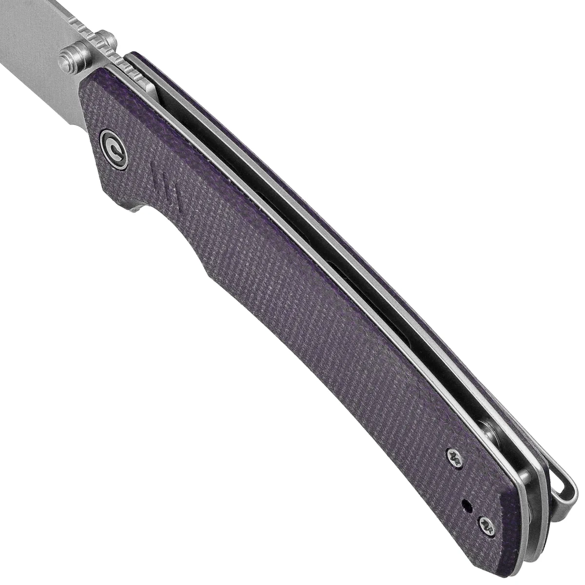 - Merit Purple Canvas Micarta, Satin, kompaktowy folder EDC renomowanej firmy Civivi. Głownia ze stali nierdzewnej Sandvik 14C28N, ergonomiczna rękojeść z szorstkiego kompozytu Micarta. Doskonałe narzędzie do noszenia na co dzień, niezawodne i trwałe!