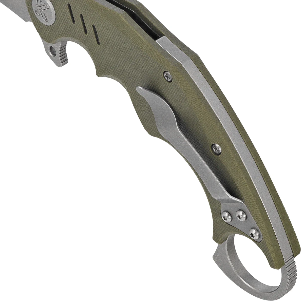 - Wrath Green G10, Beadblasted kompaktowy karambit projektu MUZI Design. Zakrzywiona głownia ze stali Sandvik 14C26N, profilowana rękojeść z kompozytu G10. Trzy sposoby otwierania, flipper, otwór na kciuk oraz szybkiego otwarcia o krawędź kieszeni.