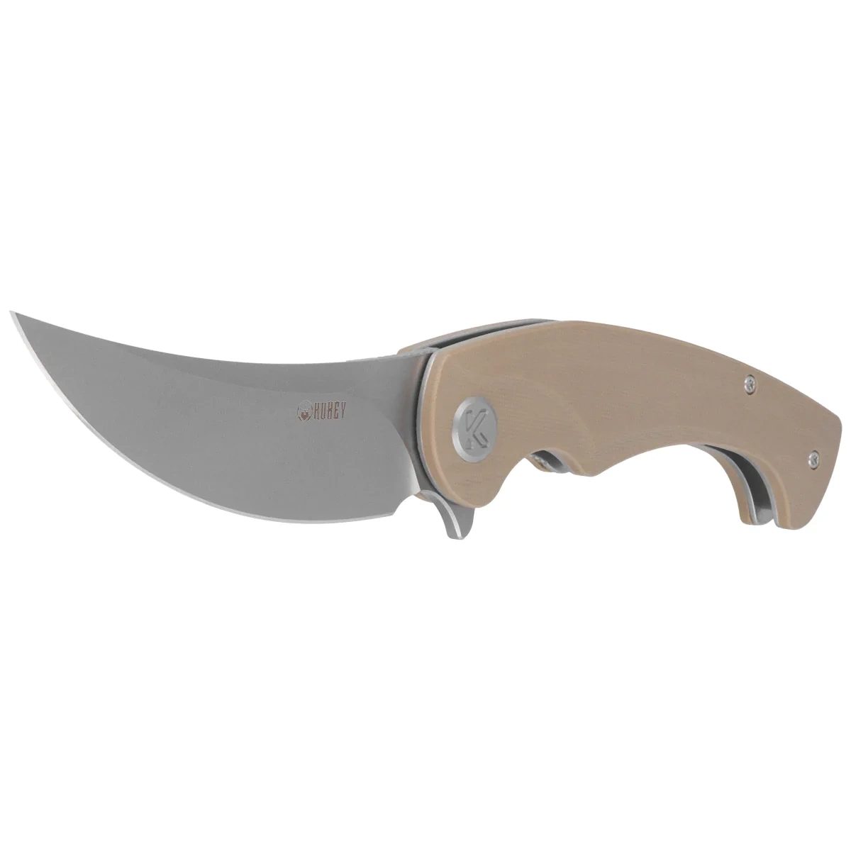 - Scimitar Tan G10, Bead Blasted wyrazisty folder z charakterystyczną głownią ze stali Sandvik 14C28N, rękojeść z nowoczesnego kompozytu G10. Idealny nóż do intensywnego użytkowania. Kubey, trwałość i funkcjonalność narzędzi, które służą latami!