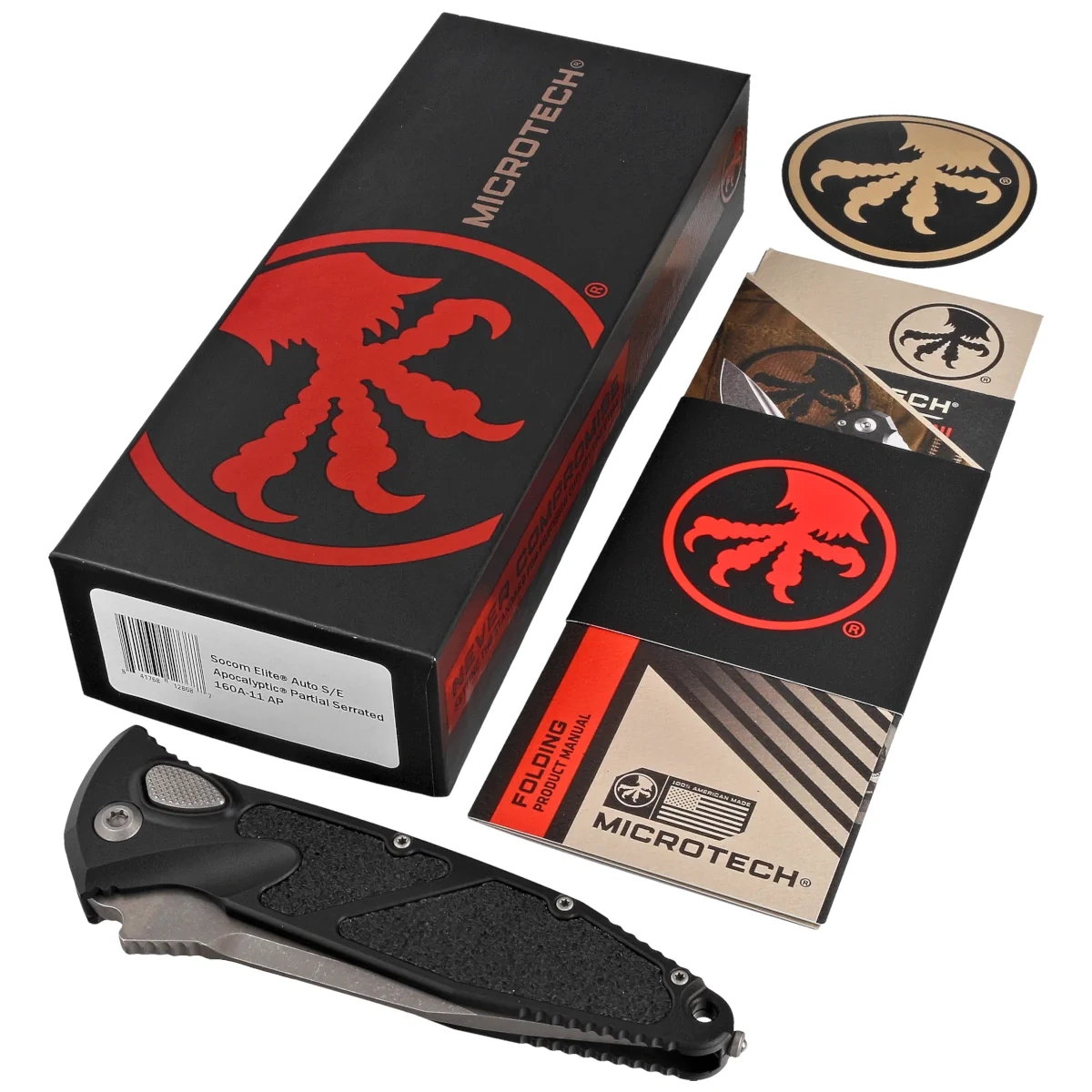 Nóż automatyczny Microtech Socom Elite Auto S/E Black Aluminium, Apocalyptic P/S M390 by Tony Marfione (160A-11AP)