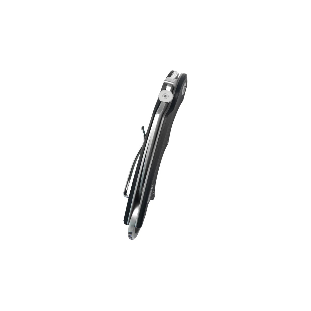 Rękojeść - wykonana z kompozytu G10, materiału niezwykle wytrzymałego mechanicznie i praktycznie całkowicie odpornego na warunki atmosferyczne i działanie chemikaliów, teksturowane dla poprawienia pewności uchwytu. Wykonane z przodu podcięcie na palec (fore finger groove) poprawia pewność uchwytu. Masywny backspacer zakończono pierścieniem palcowym (Back Ring). Zapobiega on przypadkowemu wypuszczenia noża z ręki a także ułatwia on obracanie foldera wokół palca, umożliwiając wykonywanie tradycyjnych technik. Oś pivota zdobi stylizowane logo. Jednopozycyjny (lewa) klips pozwala przenosić nóż w pozycji tip-up (czubkiem do góry.