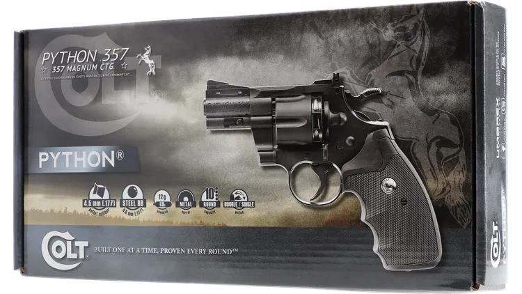 - Colt Python 2.5" 4.5mm BB CO2 to realistyczna replika Magnum .357. Lekka, solidna konstrukcja, podwójny system amunicji, precyzyjne celowanie i wygodny chwyt zapewniają świetne wrażenia ze strzelania.