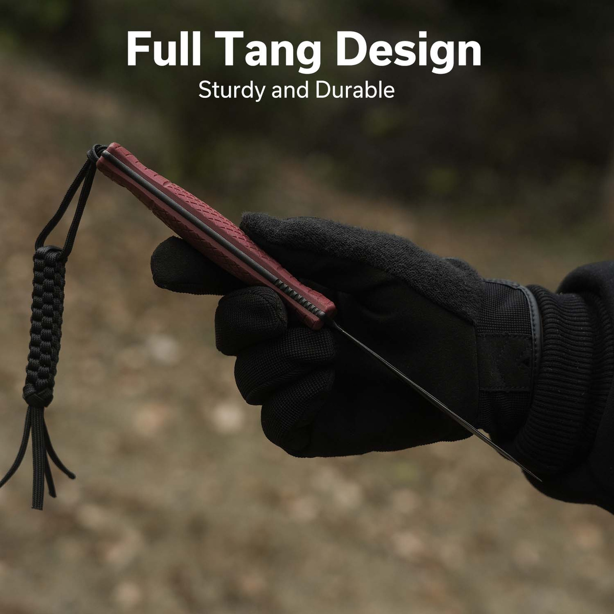 Rękojeść - okładziny z szorstkiego kompozytu G10, tworzywa niewrażliwego na warunki atmosferyczne, odpornego na chemikalia i uszkodzenia mechanicznektóre zostały przykręcone bezpośrednio do tanga. Profilowany kształt głębokie moletowanie zapewnia wygodny, pewny uchwyt również wilgotnymi dłońmi. Podcięcie na palec (fore finger groove) poprawia pewność uchwytu i zabezpiecza przed zsunięciem się dłoni na ostrze. Otwór na linkę ozdobną lub zabezpieczającą (smycz z plecionego paracordu dołączona do noża).