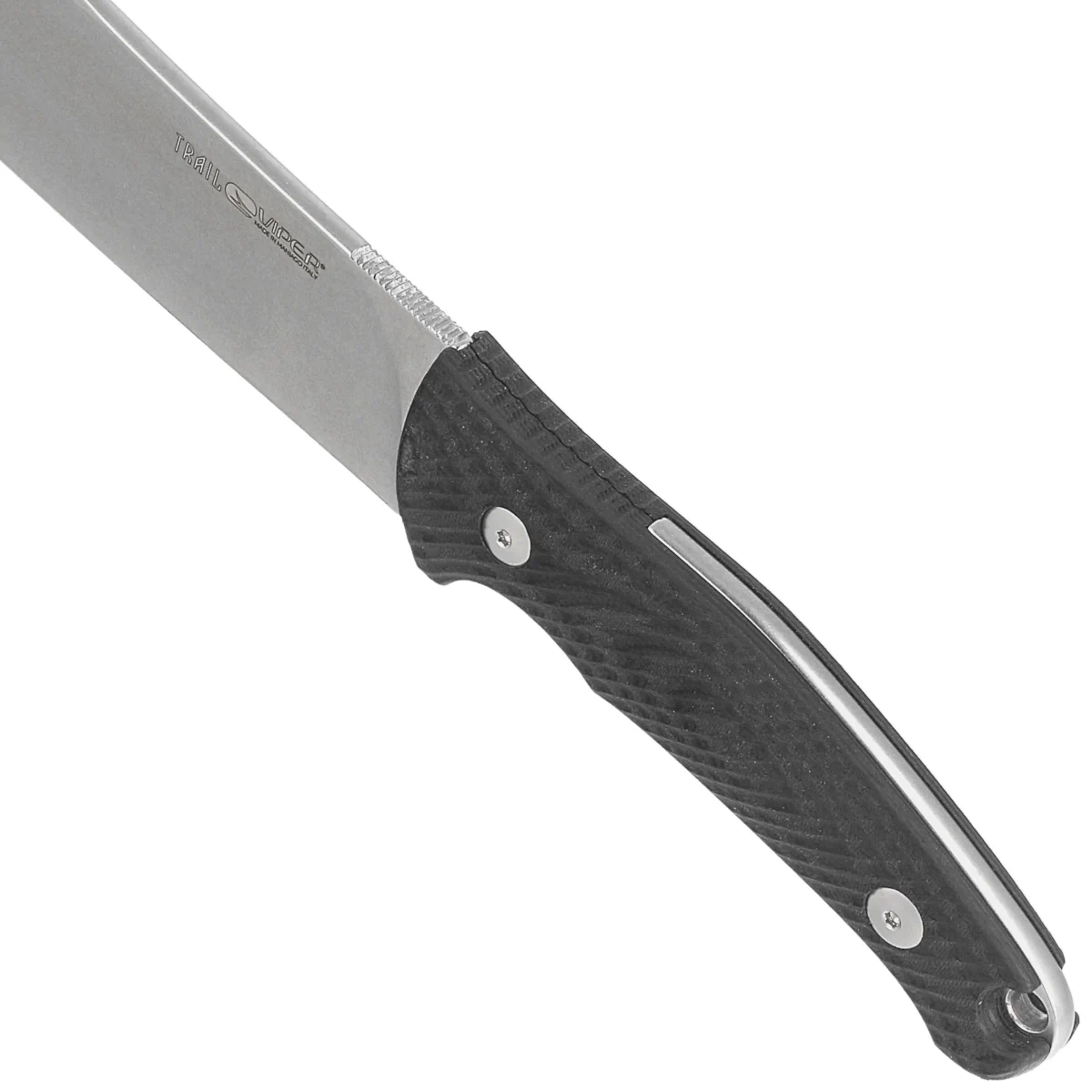 Trail Black Suretouch, Stonewashed to zaawansowany nóż terenowy, zaprojektowany przez cenionego duńskiego knifemakera, Jensa Ansø. Głownia ze stali nierdzewnej Böhler N690Co, odpornej na korozję i łatwej w ostrzeniu. Konstrukcja semi hidden tang i profil głowni gwarantuje doskonałą wytrzymałość podczas intensywnych prac terenowych. Uchwyt wykonany jest z nowoczesnego kompozytu Suretouch, który łączy właściwości gumy i laminatu. Dzięki temu zapewniona została pewność chwytu, nawet przy wilgotnej dłoni lub w rękawicy. Materiał ten jest odporny na uszkodzenia mechaniczne, działanie wilgoci oraz ekstremalne temperatury. Całość uzupełnia solidna pochwa, wykonana z naturalnej skóry. Wyposażona została w praktyczne mocowanie na pas, pozwalające na wygodne przenoszenie narzędzia. Każdy detal noża świadczy o dbałości projektanta o ergonomię, estetykę oraz solidność wykonania. Produkt doceniany jest zarówno przez kolekcjonerów, jak i użytkowników wymagających niezawodnego sprzętu.