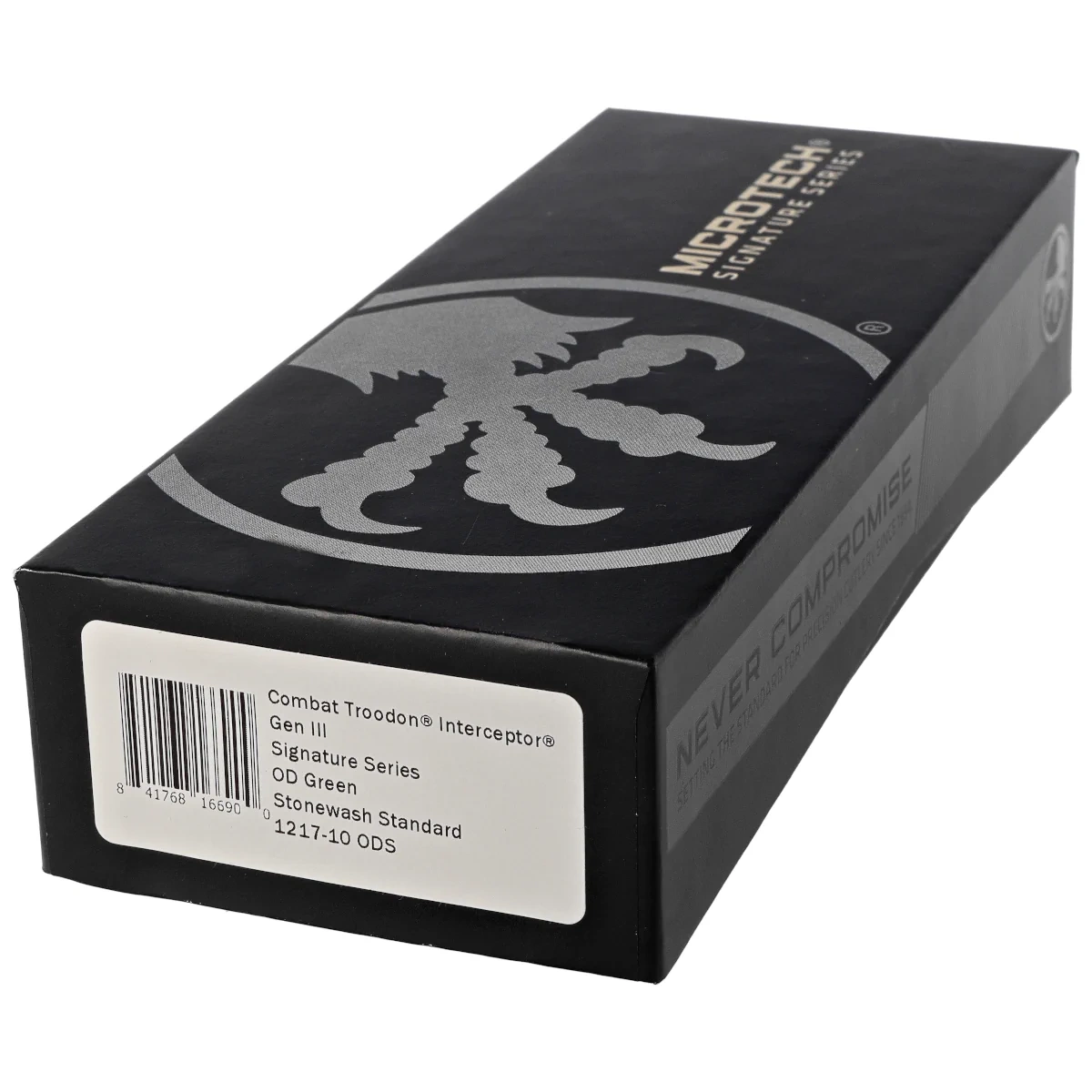 Nóż automatyczny OTF Microtech Combat Troodon Gen III Interceptor Signature OD Green Aluminium, Stonewashed M390MK by Tony Marfione (1217-10ODS)