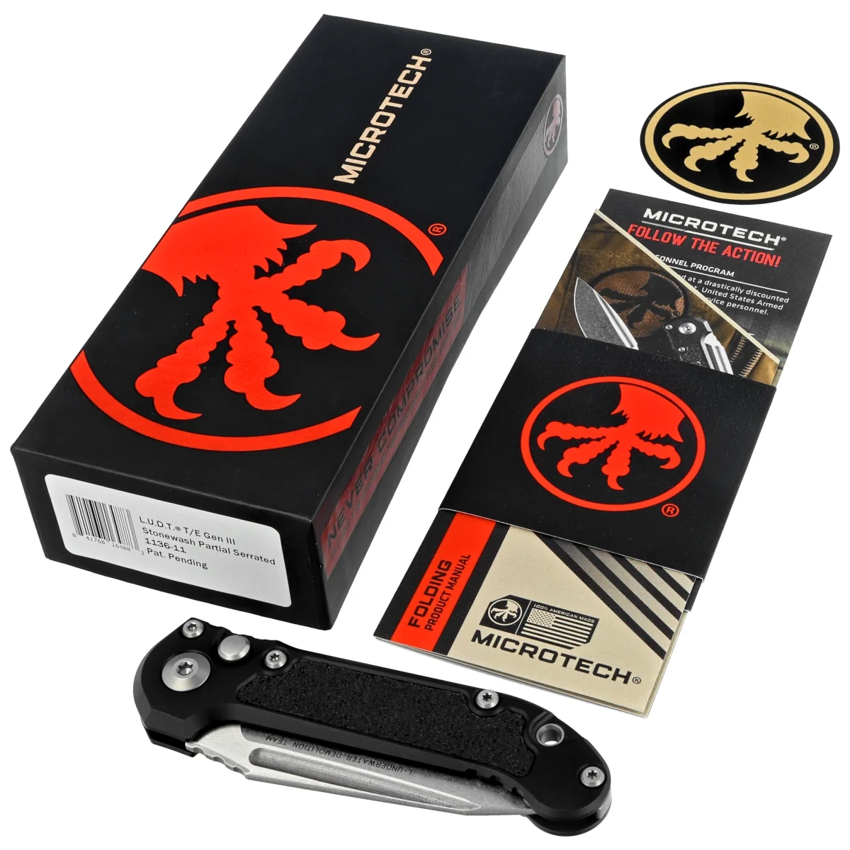 Nóż automatyczny Microtech LUDT Gen III T/E Black Aluminium, Stonewashed P/S M390MK by Tony Marfione (1136-11)