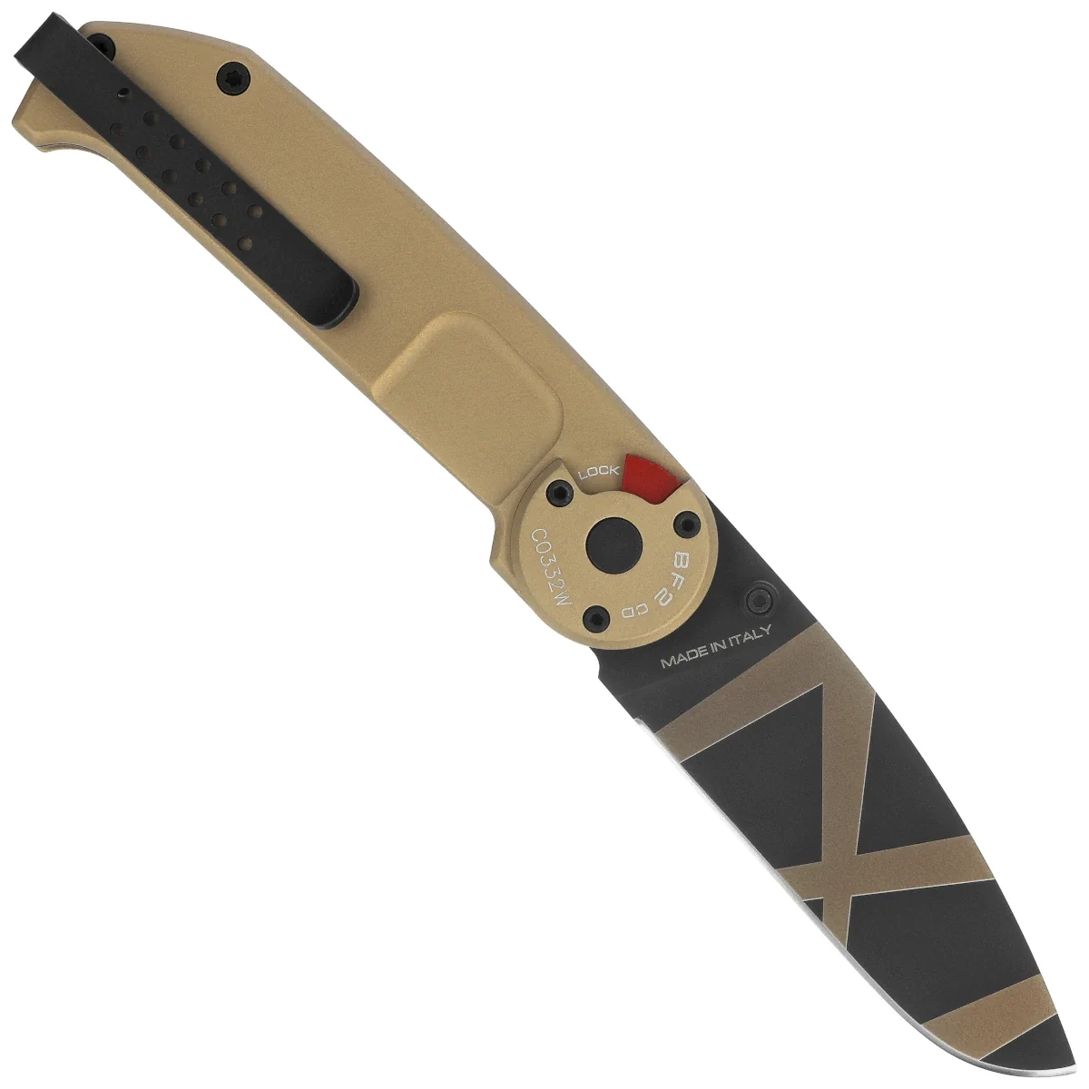 - BF2 CD Desert Aluminium, Desert Warfare ulepszona wersja pełnowymiarowego foldera taktycznego z linii Basic do profesjonalnego użytku. Głownia Drop Point z austriackiej stali Böhler N690 o twardości 58 HRC. Wygodna rękojeść z aluminium.