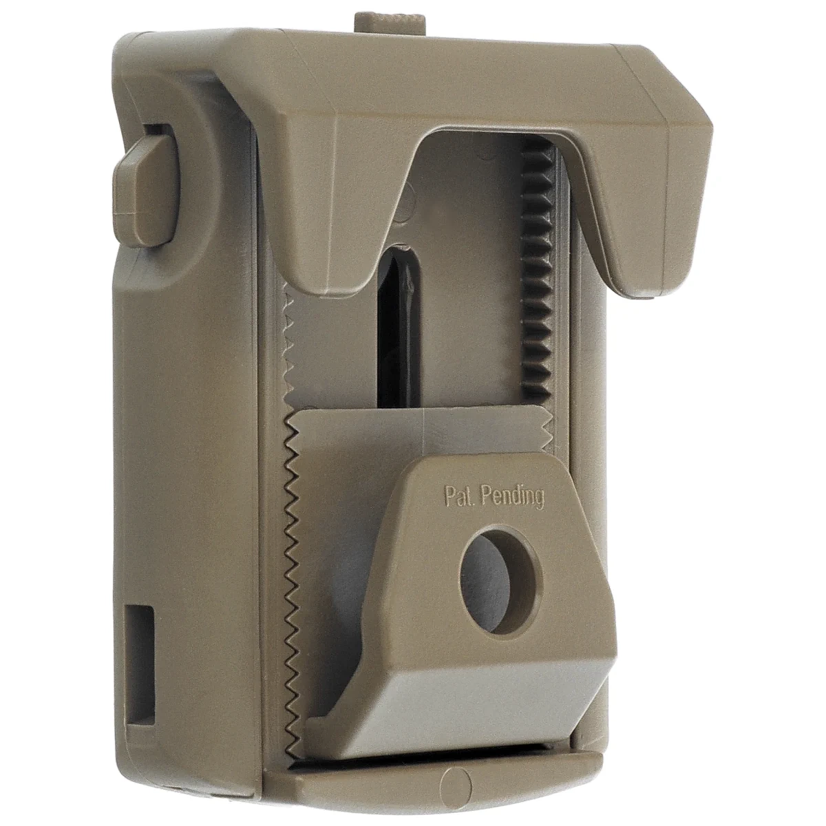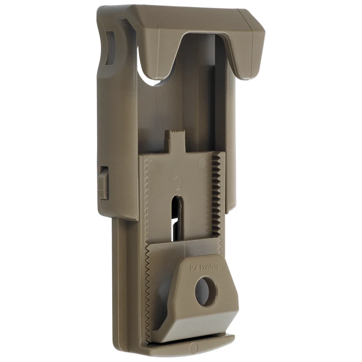 UBC-01 Khaki Swiveling Belt Clip, opcjonalne mocowanie transportowe zaciskane na pas, alternatywnie można go zamocować pod taśmy MOLLE MIL STD. Przeznaczone do przenoszenia nylonowych lub plastykowych ładownic, uchwytów, kabur czeskiej firmy ESP na magazynki, pałki teleskopowe, paralizatory, latarki, gaz pieprzowy.