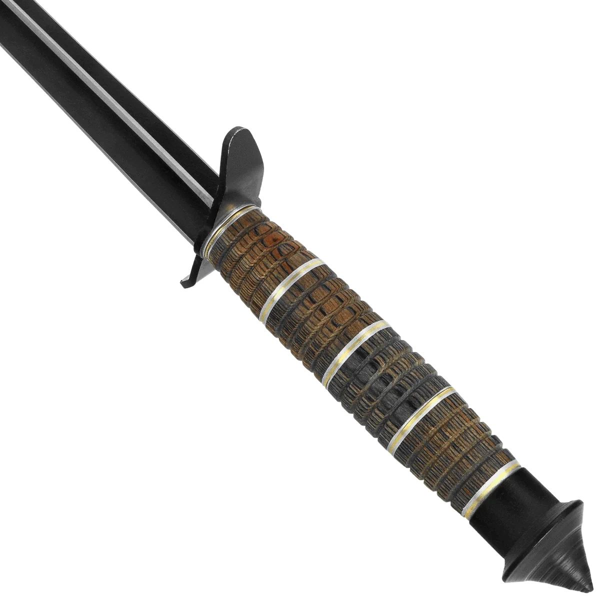 Głownia - wykonana ze stali nierdzewnej 3Cr13MoV, znanej z odporności na korozję i łatwości konserwacji. Charakterystyczny profil tri-edge obejmuje trzy krawędzie zbieżne w ostro zakończonym czubku, co nadaje konstrukcji agresywny wygląd oraz wysoką zdolność penetracyjną. Brak klasycznego szlifu i jednolita forma przekładają się na dekoracyjny i ceremonialny charakter noża. Czarne wykończenie (black coated) wzmacnia jego taktyczną estetykę i ogranicza odblaski, wpisując się w stylistykę noży pokazowych i ekspozycyjnych. Całość stanowi element o wyrazistym charakterze – przeznaczony do kolekcji, dekoracji lub pokazów.