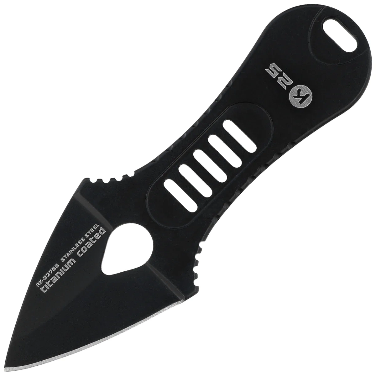 - RK-32759 Black Titanium – ultrakompaktowy nóż na szyję marki K25 z głownią typu dagger, wykończoną powłoką Black Titanium. Skeletonizowana konstrukcja full tang i pochwa z łańcuszkiem zapewniają niezawodne i dyskretne przenoszenie EDC.