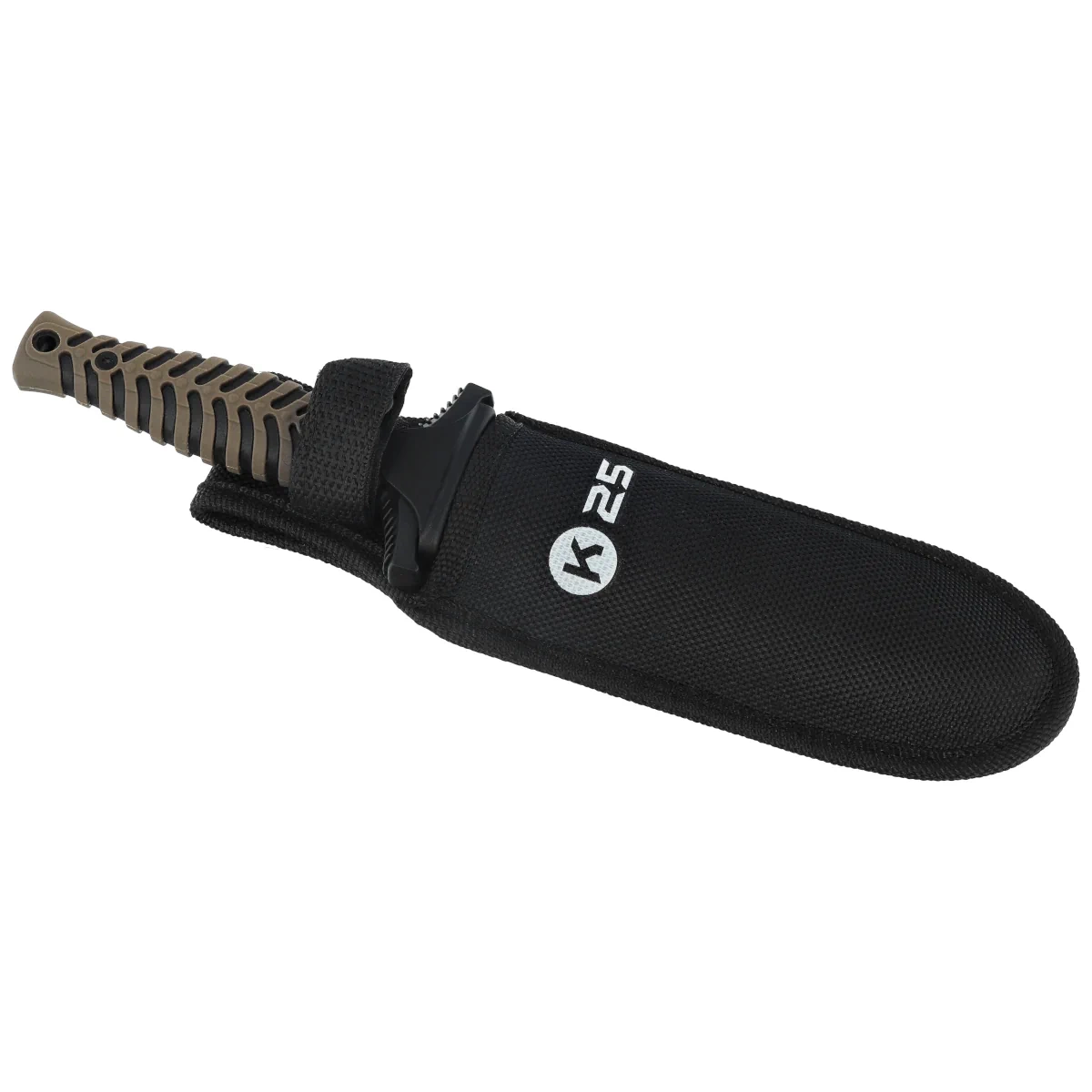 Rękojeść - wykonano z tworzywa ABS pokrytego antypoślizgową gumą, co zapewnia pewny chwyt w każdych warunkach – od błota po wilgoć. Lekka i ergonomiczna forma sprzyja intuicyjnej obsłudze noża, a subtelna tekstura poprawia kontrolę nad narzędziem. Kompaktowa budowa umożliwia wygodne noszenie przy bucie lub pasie, a pochwa nylonowa z systemem Quick Release gwarantuje szybki dostęp, nawet pod presją czasu. Model 32207 to praktyczne narzędzie taktyczne dla użytkowników oczekujących niezawodności, dyskrecji i efektywności działania.
