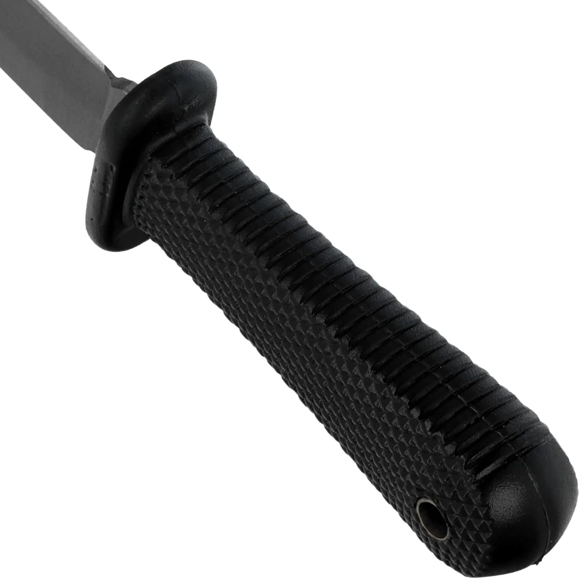 Rękojeść - z wytrzymałego tworzywa ABS, którego właściwości mechaniczne zapewniają odporność na zużycie i uszkodzenia w warunkach terenowych. Kompaktowy kształt został zoptymalizowany pod kątem pewnego chwytu, a zaokrąglone krawędzie poprawiają komfort użytkowania. W komplecie znajduje się formowana pochwa ABS z łańcuszkiem kulkowym, która umożliwia wygodne zawieszenie na szyi, zapewniając szybki dostęp do narzędzia. Całość tworzy lekką, funkcjonalną konstrukcję o taktycznym przeznaczeniu – gotową do działania zawsze wtedy, gdy liczy się niezawodność i mobilność.