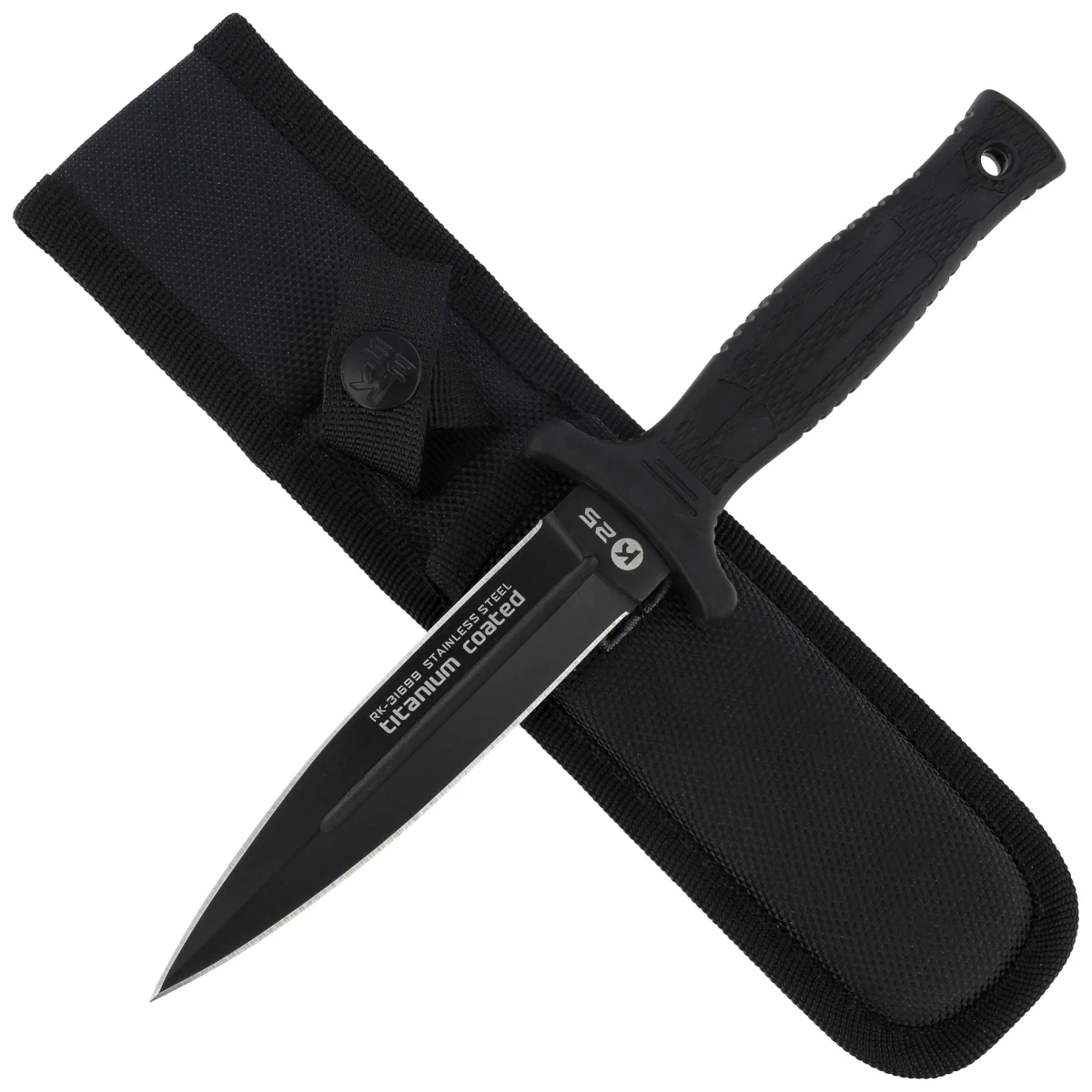 - RK-31699 Black Rubber, Black Titanium – kompaktowy nóż boot marki K25 z ostrzem typu dagger pokrytym powłoką Black Titanium i rękojeścią z antypoślizgowej czarnej gumy. Dyskretne, skuteczne narzędzie do szybkiego użycia w terenie i sytuacjach awaryjnych.