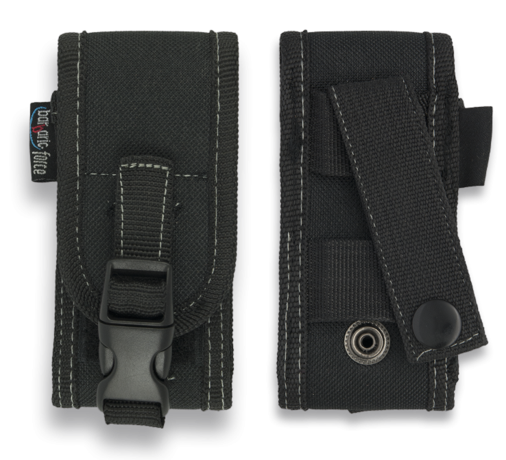 - Barbaric Force Pas / Molle, Nylon Black 100-120mm, trwałe etui z czarnego nylonu balistycznego, przeznaczone do przenoszenia noży składanych i narzędzi EDC o długości do 120 mm. Możliwość troczenia do systemu M.O.L.L.E.
