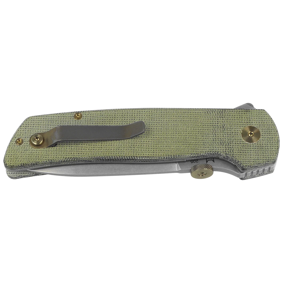 Rękojeść - z wysokowytrzymałego kompozytu Canvas Micarta w odcieniu OD Green, materiału odpornego na działanie wilgoci, zabrudzenia oraz uszkodzenia mechaniczne. Delikatne fazowanie krawędzi i anatomiczne profilowanie uchwytu zapewniają naturalne ułożenie dłoni, zwiększając stabilność i kontrolę operowania nożem przy dłuższej pracy. Struktura materiału zachowuje przyczepność nawet w trudnych warunkach, zapewniając pewny chwyt również w rękawicach lub przy zwiększonej wilgotności.
