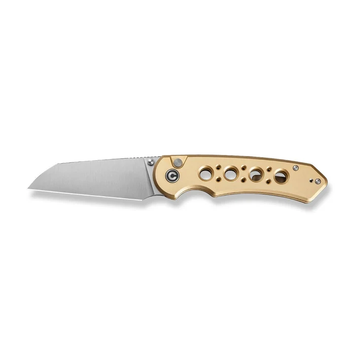 - Pragma Prime Champagne Aluminium, Satin – smukły folder Civivi EDC z głownią ze stali Sandvik 14C28N o profilu Wharncliffe, wygodna rękojeść z aluminium, intuicyjna blokada button lock. Ergonomia i precyzja wykonania w kompaktowej formie.