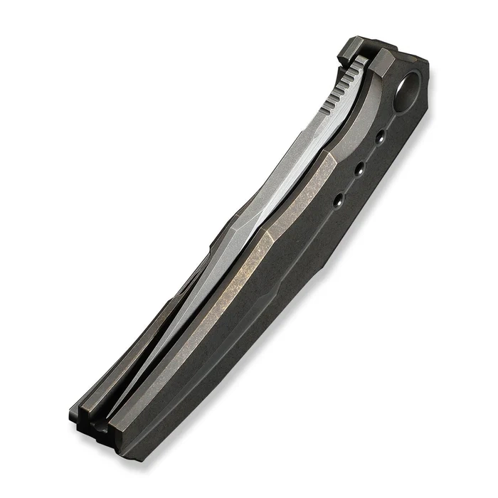 - Kyklos Bronze Titanium, Gray Stonewashed/Satin, elegancki folder WeKnife z wygodną, tytanową rękojeścią i głownią ze stali premium Böhler M390 o profilu clip point. Blokada frame lock zapewnia bezpieczeństwo. Minimalizm, precyzja i trwałość klasy premium.