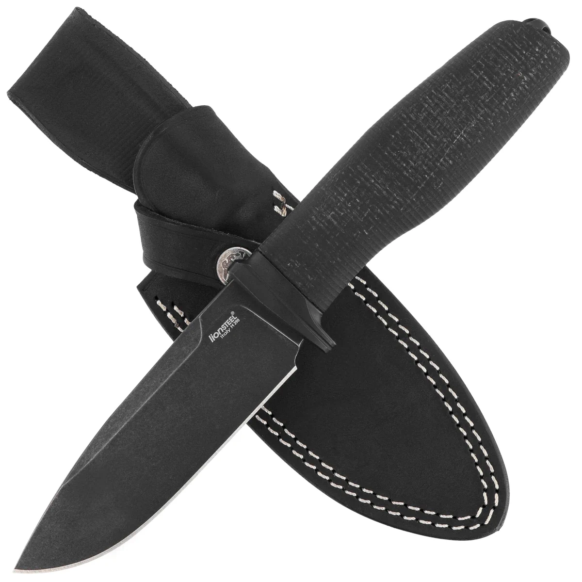 - Acha Black Burlap Micarta, Black Stonewashed – wytrzymały nóż z głownią stałą LionSteel zaprojektowany przez Michele "Mollettę" Pensato, z ostrzem ze stali Böhler M390 i rękojeścią z kompozytu Burlap Micarta, wzmocnioną tytanowym jelcem. Skórzana pochwa.