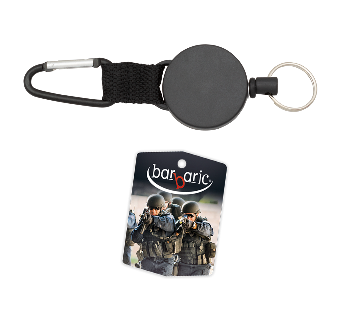 - Retraktor Barbaric Nylon/PVC z karabińczykiem 70cm (09920) – kompaktowe akcesorium EDC z rozwijaną linką długości 70 cm, wytrzymałą obudową z PVC i karabińczykiem na nylonowej taśmie. Idealne do organizacji wyposażenia w terenie i na co dzień.