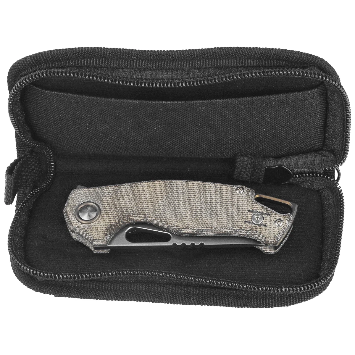 Futerał - nóż zapakowano w zapinane zamkiem miękkie nylonowe etui z logo marki. Służy do bezpiecznego przechowywania i transportowania foldera.