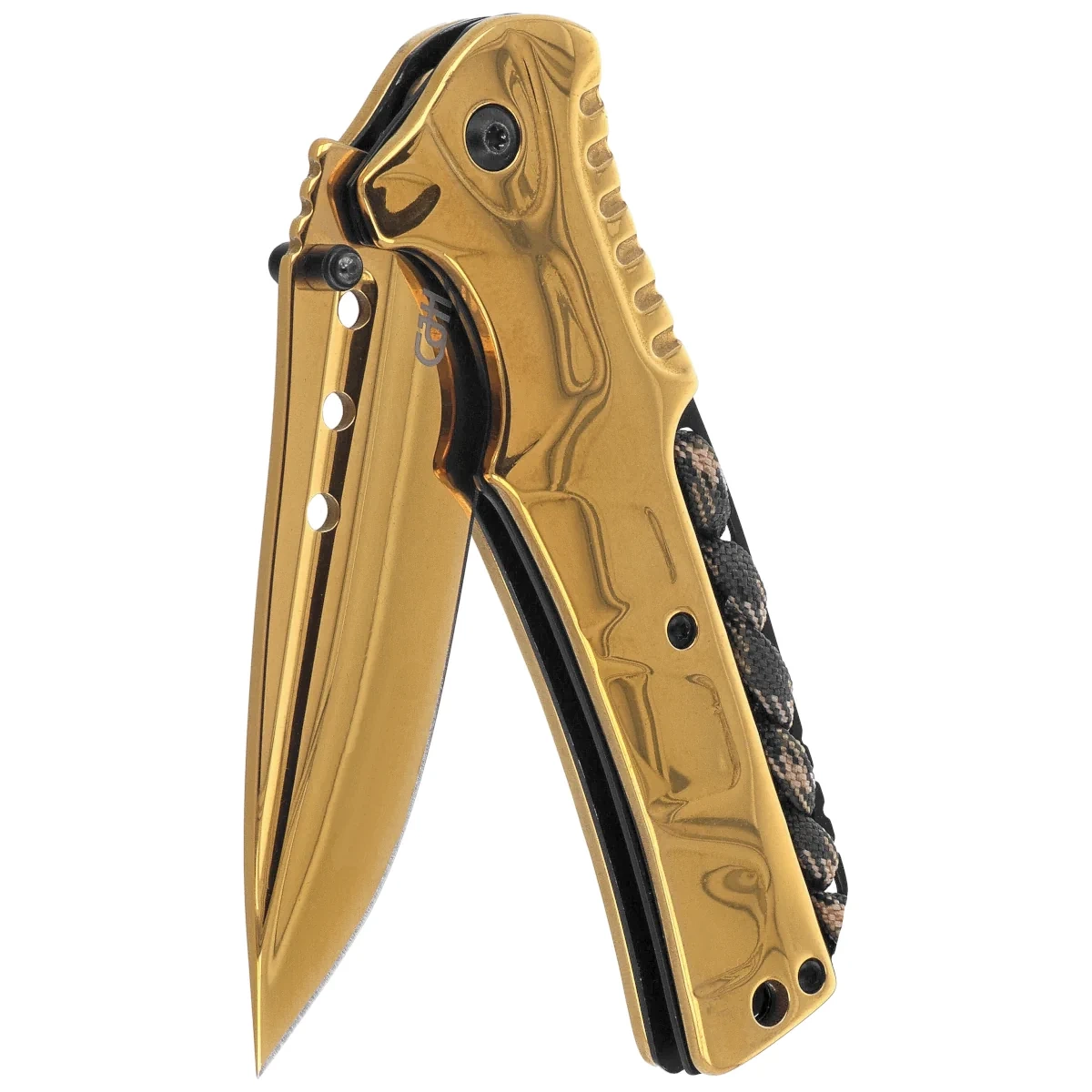 - Herbertz CJH Golden Steel, Golden – składany nóż EDC z głownią typu drop point ze stali nierdzewnej 3Cr13MoV i jednolitą złotą powłoką. Ergonomiczna rękojeść ze stali i paracord w zestawie – styl i praktyczność w jednym.