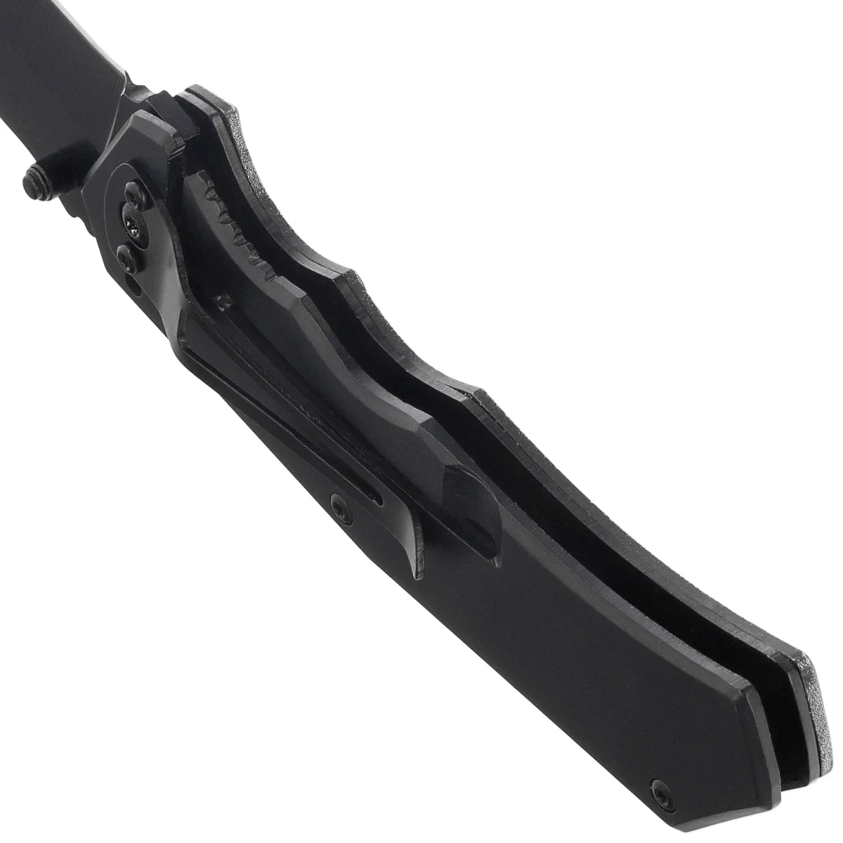 Rękojeść - z metalu, posiada profilowanie poprawiające ergonomię oraz grafikę 3D z przedstawieniem orła i lasu – detal wyróżniający ten model na tle innych folderów. Teksturowane powierzchnie i frezowania gwarantują pewny chwyt, a solidne mocowanie okładzin wzmacnia ogólną sztywność konstrukcji. Dodatkowo nóż wyposażono w klips do przenoszenia oraz otwór na linkę, co zwiększa jego funkcjonalność i użyteczność w codziennych sytuacjach.