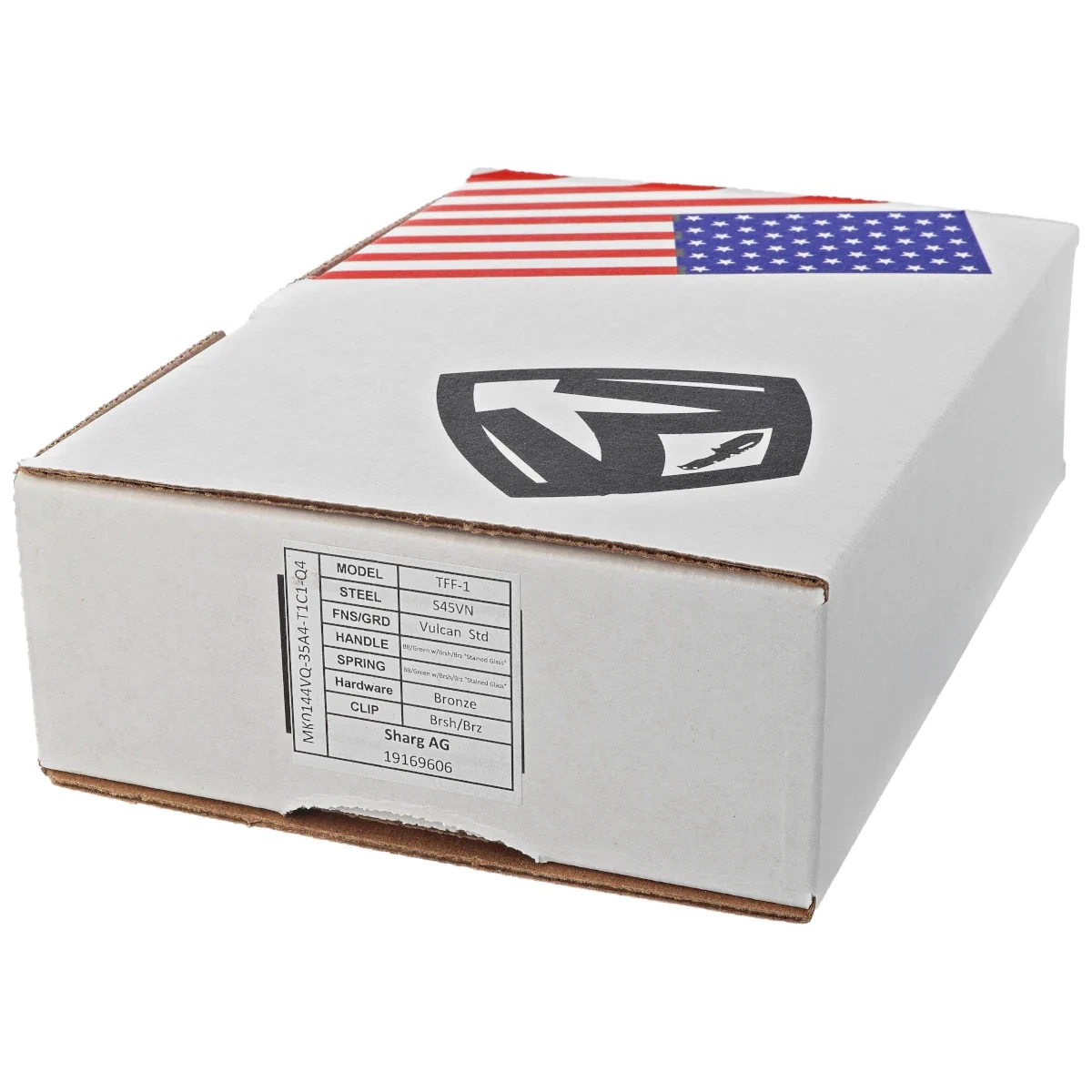 TFF-1 Green Brsh/Bronze "Stained Glass", Bronze HW, Brsh/Bronze Clip, Vulcan to flagowy folder taktyczny firmy Medford Knife & Tool, odzwierciedlający bezkompromisową filozofię projektową Grega Medforda: maksymalna wytrzymałość, pewność działania i militarna stylistyka. Skrót TFF oznacza „The Fighting Folder” – nazwę adekwatną do charakteru tego narzędzia, zaprojektowanego z myślą o ekstremalnych warunkach pracy. Gruba głownia ze stali CPM S45VN została wykończona metodą Vulcan, co nadaje każdemu egzemplarzowi indywidualny, organiczny wzór, trudny do podrobienia i wyjątkowy wizualnie. Rękojeść wykonano z frezowanego tytanu, ozdobionego geometrycznym motywem Stained Glass oraz anodowanego w kontrastowym układzie kolorystycznym Brushed Green/Bronze. Zastosowane brązowe śruby, klips deep carry z logo producenta oraz dokładnie spasowana blokada frame lock czynią z TFF-1 zarówno narzędzie bojowe, jak i przedmiot dla zaawansowanych kolekcjonerów. Całość uzupełnia firmowe etui transportowe i certyfikat autentyczności. To nóż, który doskonale łączy użytkową funkcjonalność z kunsztem rzemiosła.