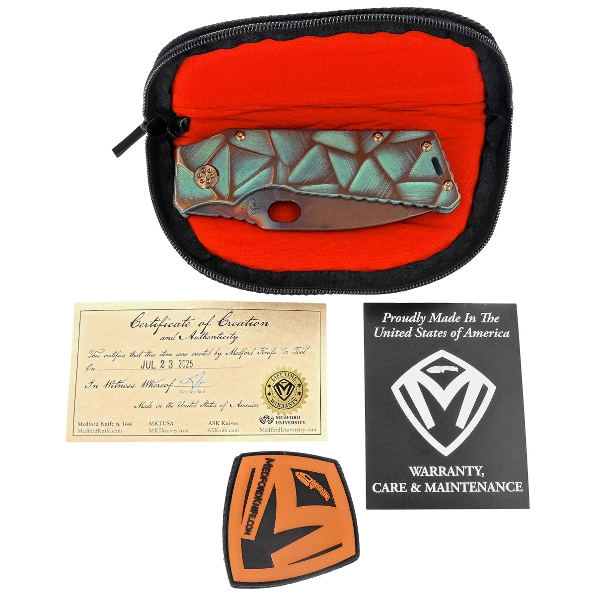 Nóż składany Medford TFF-1 Green Brsh/Bronze ''Stained Glass'', Bronze HW, Brsh/Bronze Clip, Vulcan S45VN by Greg Medford (MK0144VQ-35A4-T1C1-Q4)