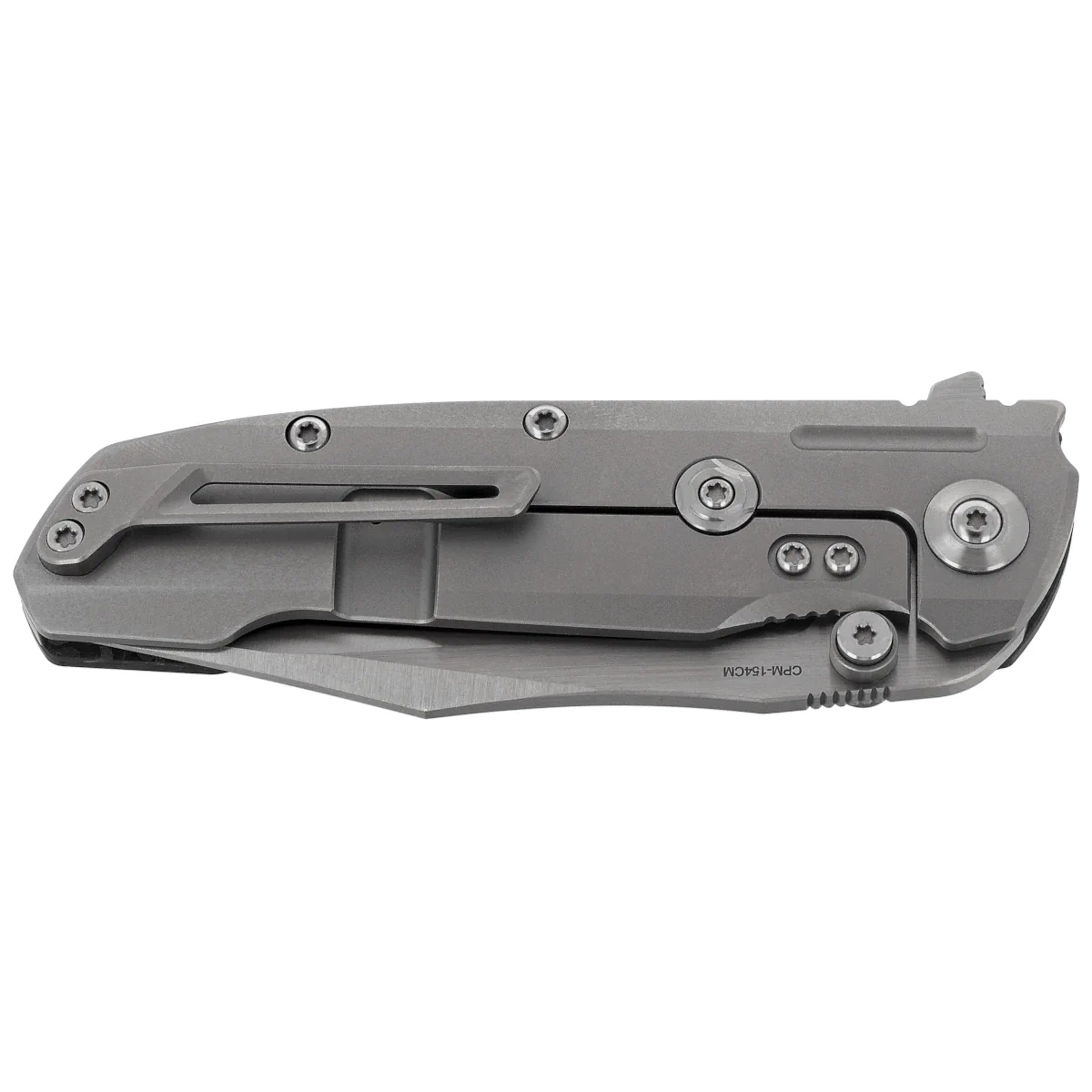 - District 9 V2 Bead Blast Titanium/Carbon Fiber, Satin, nóż składany EDC z głownią ze stali 154CM i frezowaną rękojeścią z tytanu i kompozytu Carbon Fiber. Detale wykończenia i precyzyjny frame lock definiują jego technologiczny charakter.