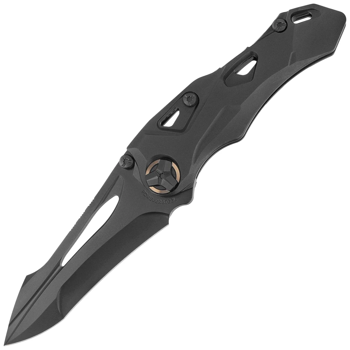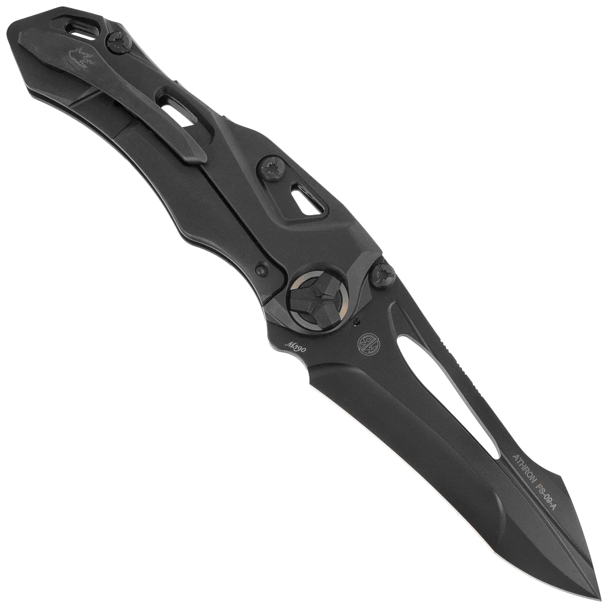 - Athron A Black DLC Titanium, Black DLC, pełen rozmachu projekt Declynxa dla firmy RikeKnife. Inspiracją dla kształtu głowni była czaszka dinozaura. Rękojeść z tytanu, klinga ze stali Böhler M390. Świetny kompan który nikogo nie pozostawi obojętnym!