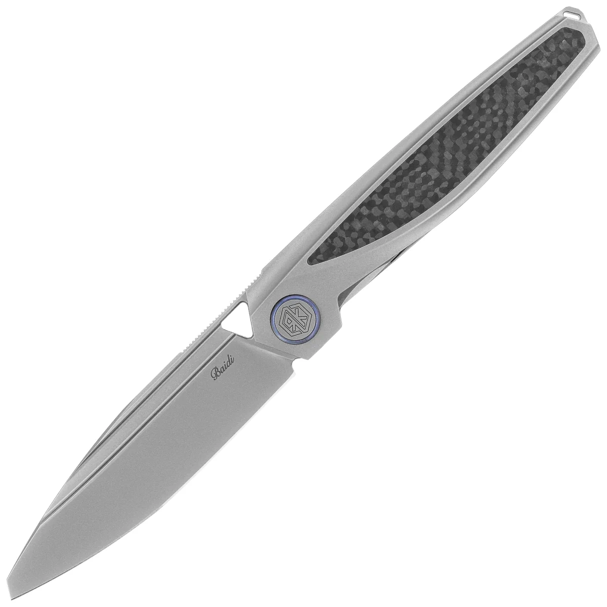 - Baidi T Titanium/Carbon Fiber, Bead Blasted, nóż składany klasy premium, łączący ostrze ze stali M390 z konstrukcją opartą na tytanowym szkielecie i okładzinach z tytanu i kompozytu Carbon Fiber. Perfekcja, wyrafinowany styl i funkcjonalność EDC.
