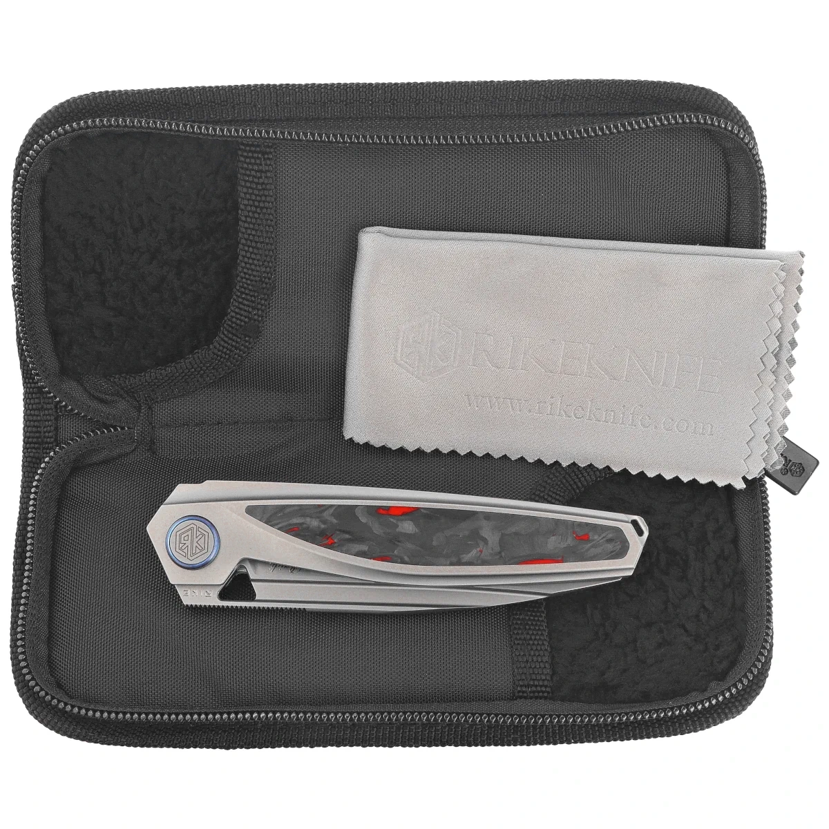 - Baidi T Titanium/Red Carbon Fiber, Bead Blasted, nóż składany klasy premium, łączący ostrze ze stali M390 z konstrukcją opartą na tytanowym szkielecie i okładzinach z tytanu i kompozytu Carbon Fiber. Perfekcja, wyrafinowany styl i funkcjonalność EDC.
