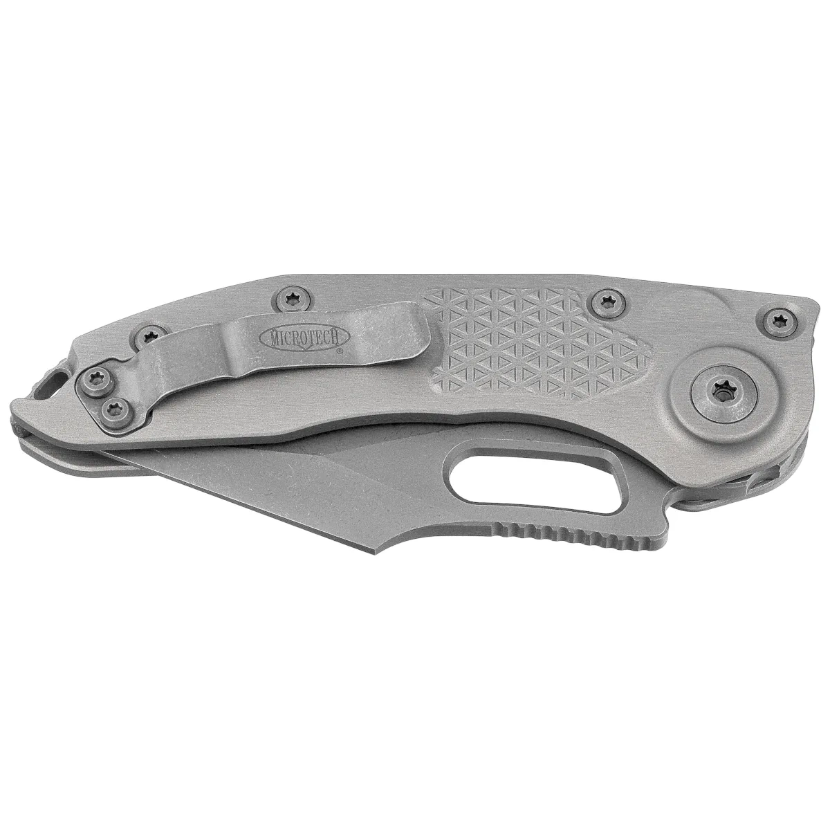 Nóż automatyczny Microtech Stitch S/E-A Natural Clear Aluminum, Apocalyptic M390MK by Borka Blades and Tony Marfione (169-10APNC)