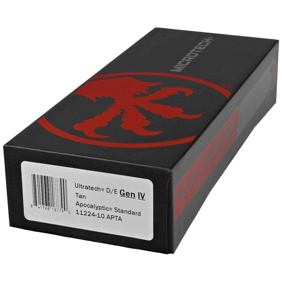 Ultratech Gen IV D/E Tan Aluminium, Apocalyptic to pełnowymiarowy nóż automatyczny OTF (Out The Front) z serii Ultratech. Czwarta generacja modelu Ultratech wprowadza szereg udoskonaleń, takich jak; Crud Kutter™ oraz Dual-Fuel Drive Train™. Przeprojektowano również rękojeść, wzbogacając ją o rozwiązania znane z innych modeli marki Microtech. Pracujący w trybie D/A (Double Action), umożliwia błyskawiczne wysunięcie i schowanie ostrza za pomocą jednego ruchu kciuka. Projekt autorstwa Tony’ego Marfione, właściciela Microtech Knives, łączy nowoczesny design z najwyższą jakością wykonania i niezawodnością charakterystyczną dla tej legendarnej marki.
