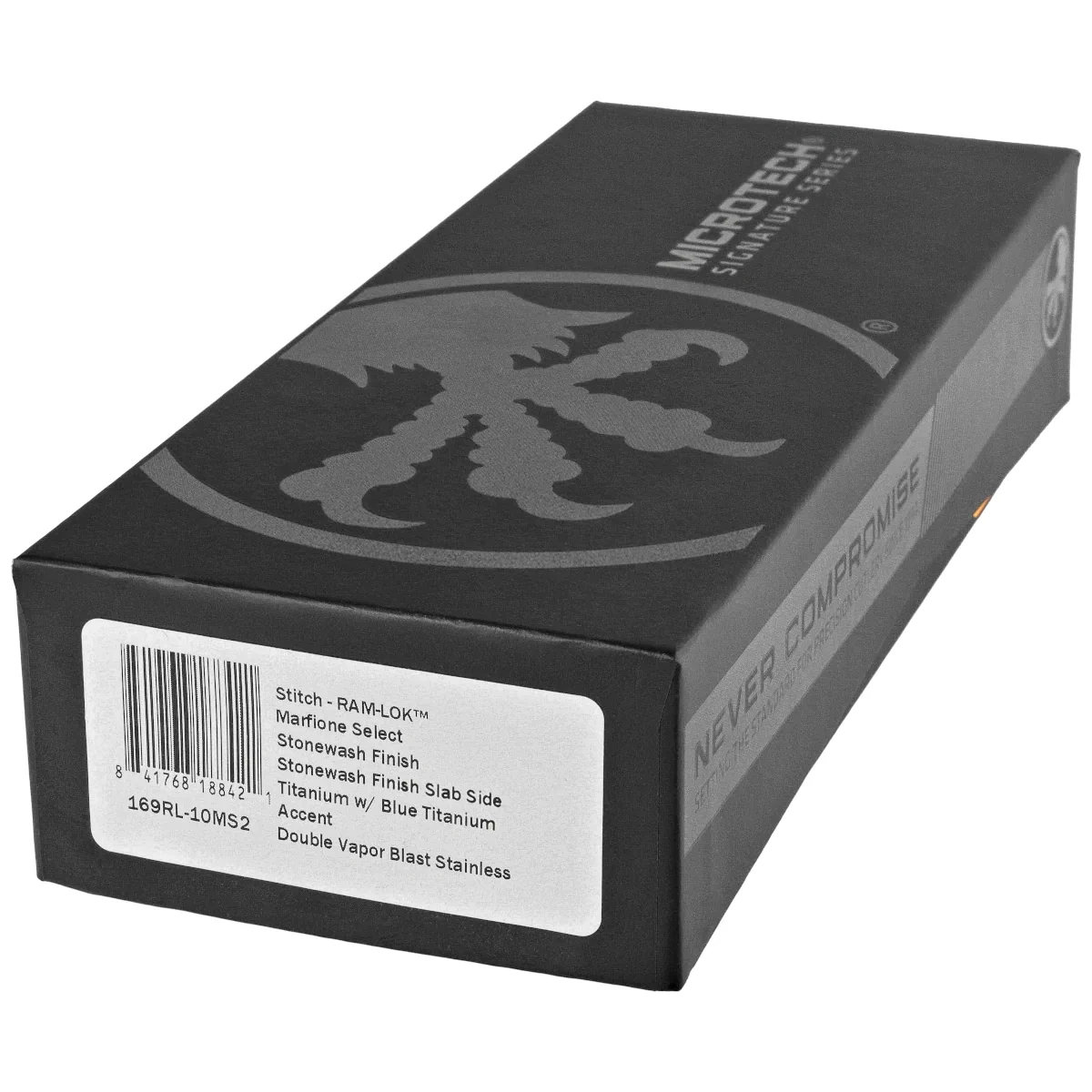 Nóż składany Microtech Marfione Select Stitch Ram-Lok S/E Titanium, Double Vapor Blast HW, Stonewashed M390MK by Borka Blades and Tony Marfione (169RL-10MS2)