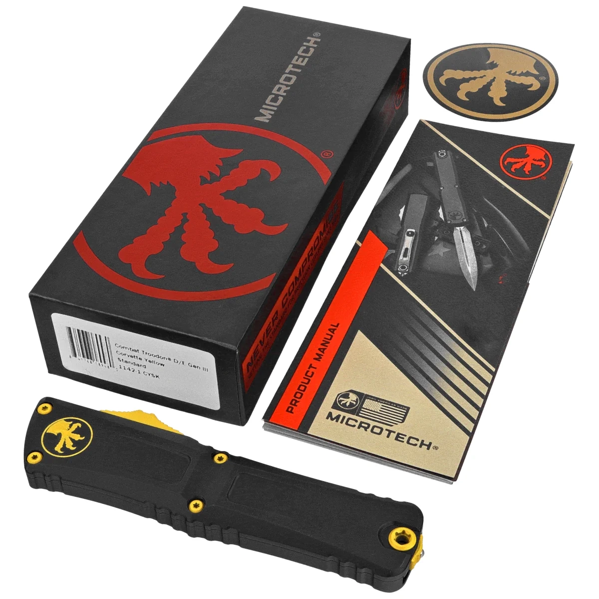 Nóż automatyczny OTF Microtech Combat Troodon Gen III D/E Black Aluminium, Cerakote Corvette Yellow M390MK by Tony Marfione (1142-1CYSK)