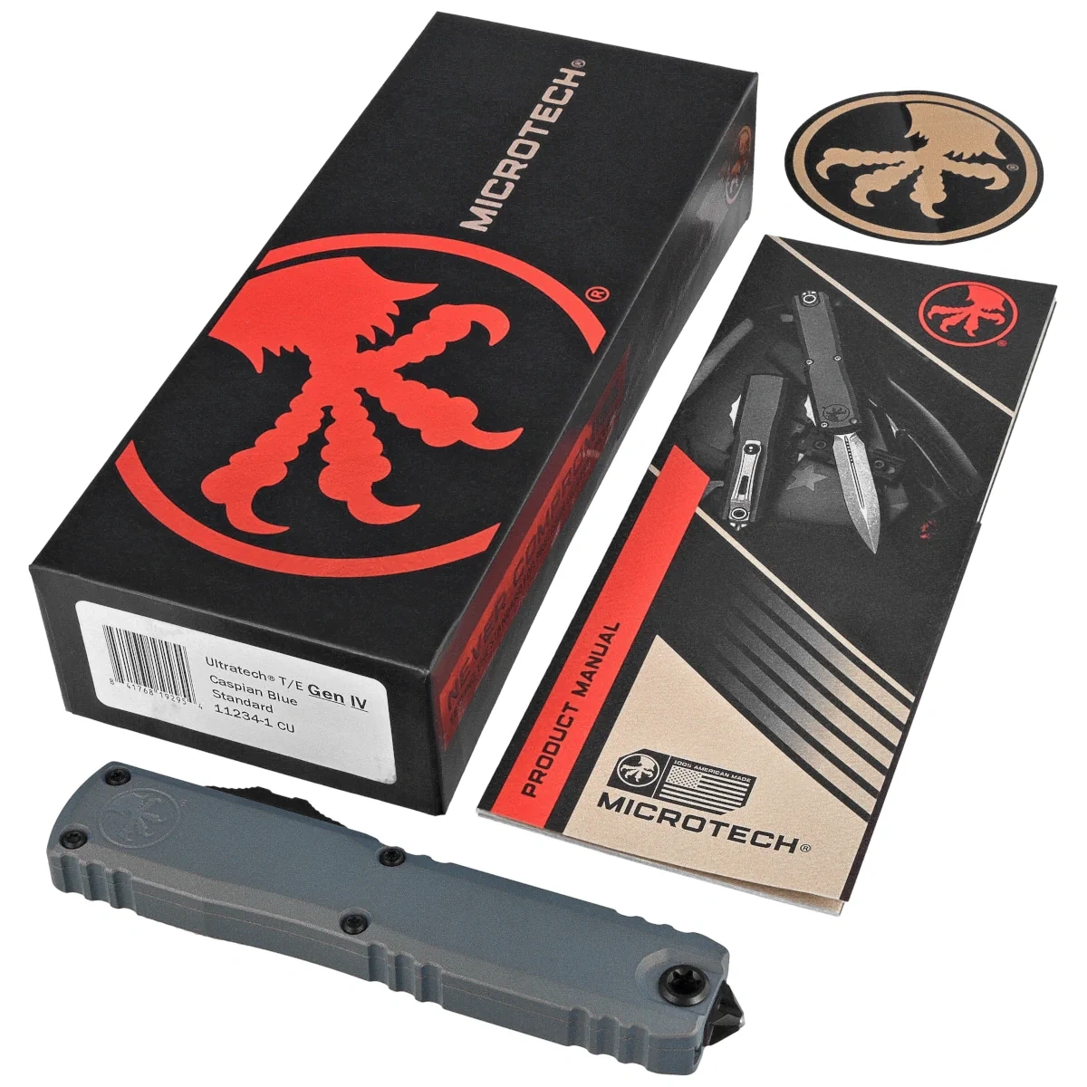 Ultratech Gen IV T/E Caspian Blue Aluminium, Black to pełnowymiarowy nóż automatyczny OTF (Out The Front) z serii Ultratech. Czwarta generacja wyróżnia się szeregiem usprawnień, takich jak; Crud Kutter™, Dual-Fuel Drive Train™. Przeprojektowano również rękojeść, wyposażając ją w rozwiązania znane z innych modeli. Pracujący w trybie D/A (Double Action), umożliwia błyskawiczne wysunięcie i schowanie ostrza za pomocą jednego ruchu kciuka. Projekt autorstwa Tony’ego Marfione, właściciela Microtech Knives, łączy w sobie nowoczesny design z najwyższą jakością wykonania.