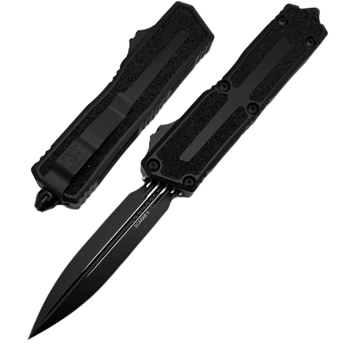 Nóż automatyczny OTF Microtech Scarab II Gen III D/E Tactical Black Aluminium, Black M390MK by Tony Marfione (1280-1T)