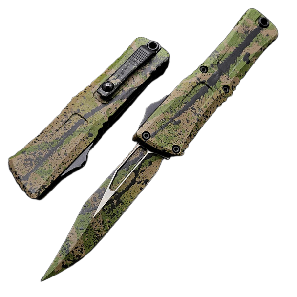 Nóż automatyczny OTF Microtech Combat Troodon Gen III Bowie Signature OD Green/Tan W/Black Splatter Aluminium, OD Green/Tan W/Black Splatter M390MK by Tony Marfione (1146-1ODTA BKSPLS)
