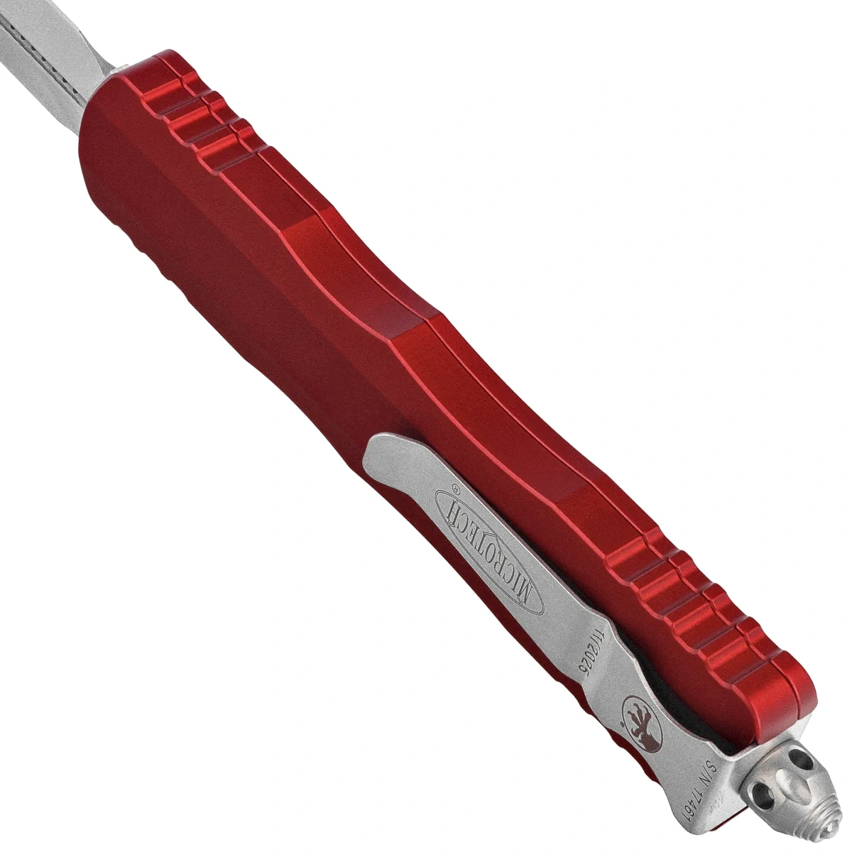 Rękojeść - wykonana z doskonałą precyzją w technologii 3D na frezarkach CNC, z pokrytego powłoką Mil-Spec aluminium 6061-T6. Faktura powierzchni rękojeści powoduje, że nóż nie ślizga się w dłoni podczas używania. Na grzbiecie i dole rękojeści znajdują się nacięcia (jimping) dla pewniejszego chwytu. Charakterystyczne jest umiejscowienie suwaka slidera, w zagłębieniu wyfrezowanym na boku rękojeści. Dzięki temu ręka układa się naturalniej przy otwieraniu i zamykaniu noża. Smukły profil oraz frezowany dwupozycyjny (prawa/lewa) masywny klips typu deep carry, umożliwiają dyskretne przenoszenie noża w kieszeni, w pozycji tip-down (czubkiem ostrza do dołu). Na klipsie znajduje się logo Microtech, numer seryjny i data produkcji. Rękojeść zakończono zbijakiem do bicia szyb, masywny stalowy trójkąt, w który wprasowano kulkę z węglika wolframu.