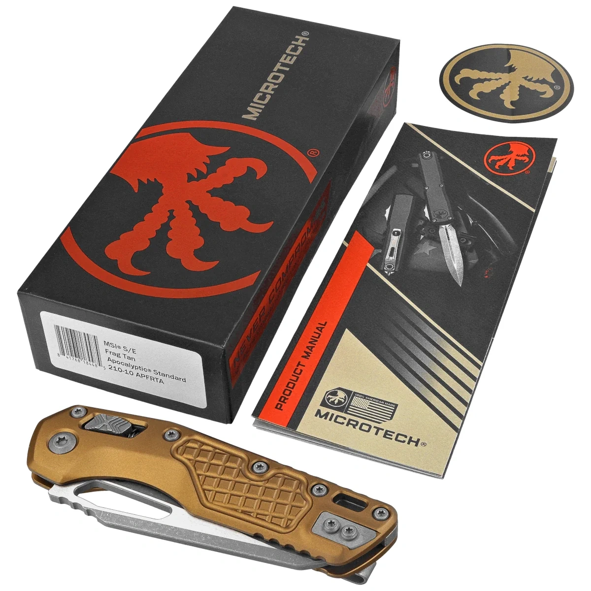 Nóż składany Microtech MSI S/E Tan Frag Aluminium, Apocalyptic M390MK by Tony Marfione (210-10APFRTA)