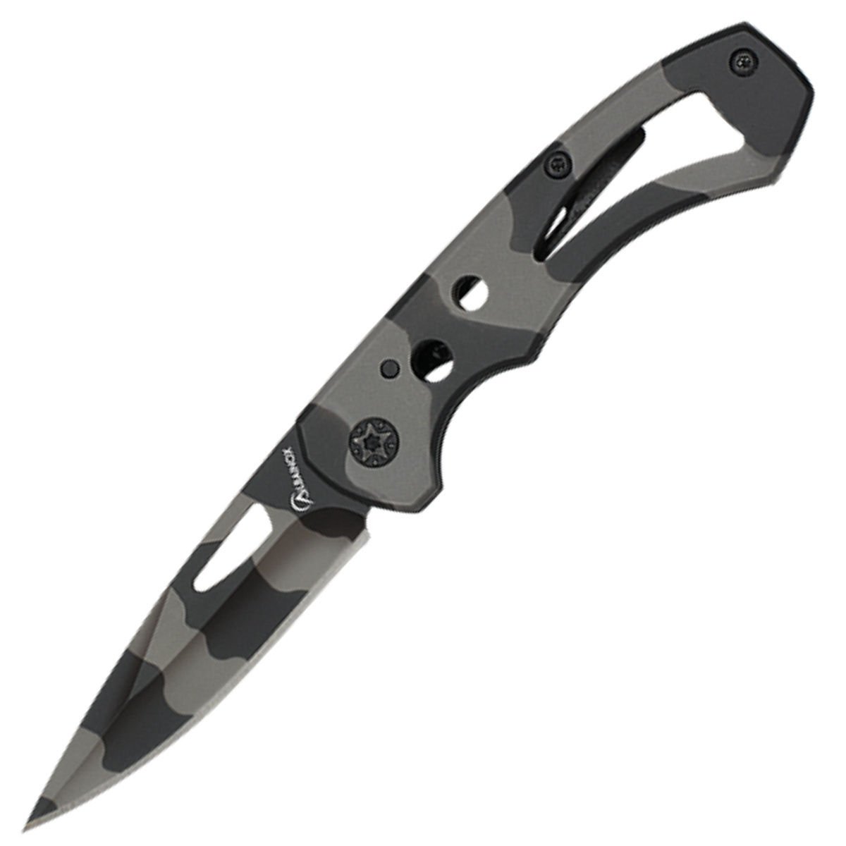 - Urban Camo Stainless Steel, Urban Camo to folder EDC o nowoczesnej sylwetce, wyposażony w głownię ze stali 3Cr13MoV i rękojeść ze stali pokrytą wzorem urban camo. Projekt łączy techniczny wygląd z trwałością i funkcjonalnością w codziennym użytkowaniu.