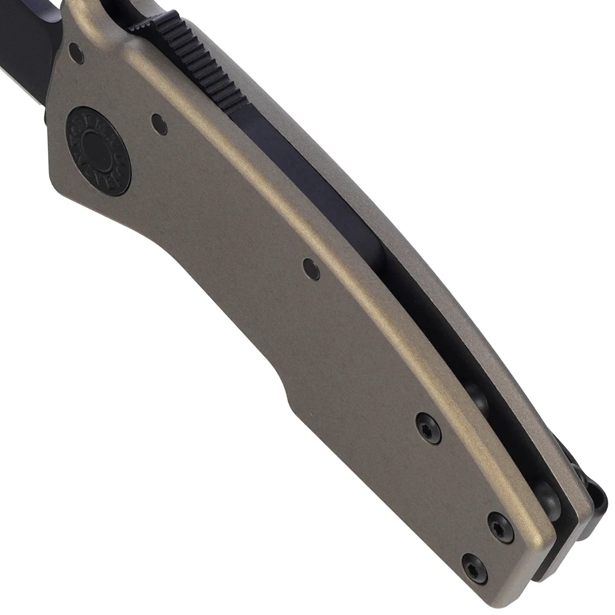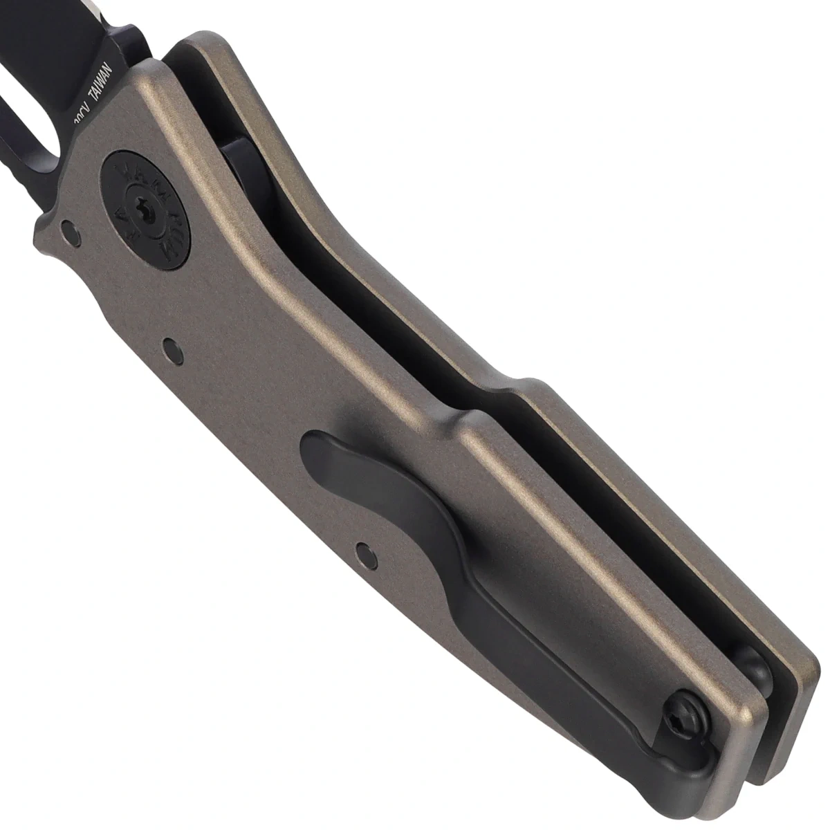 Rękojeść okładziny z aluminium, wyróżniające się lekkością, sztywnością i odpornością na warunki zewnętrzne. Wyczuwalna tekstura i profilowane podcięcia wspierają pewny chwyt, także w rękawicach.  Dwupozycyjny (prawa/lewa) klips umożliwia przenoszenie noża w pozycji tip-up, czubkiem ostrza ku górze. Shark-Lock™, umieszczony w górnej części rękojeści, działa błyskawicznie, zapewniając pełną kontrolę i bezpieczeństwo, niezależnie od preferowanego chwytu czy dominującej ręki.