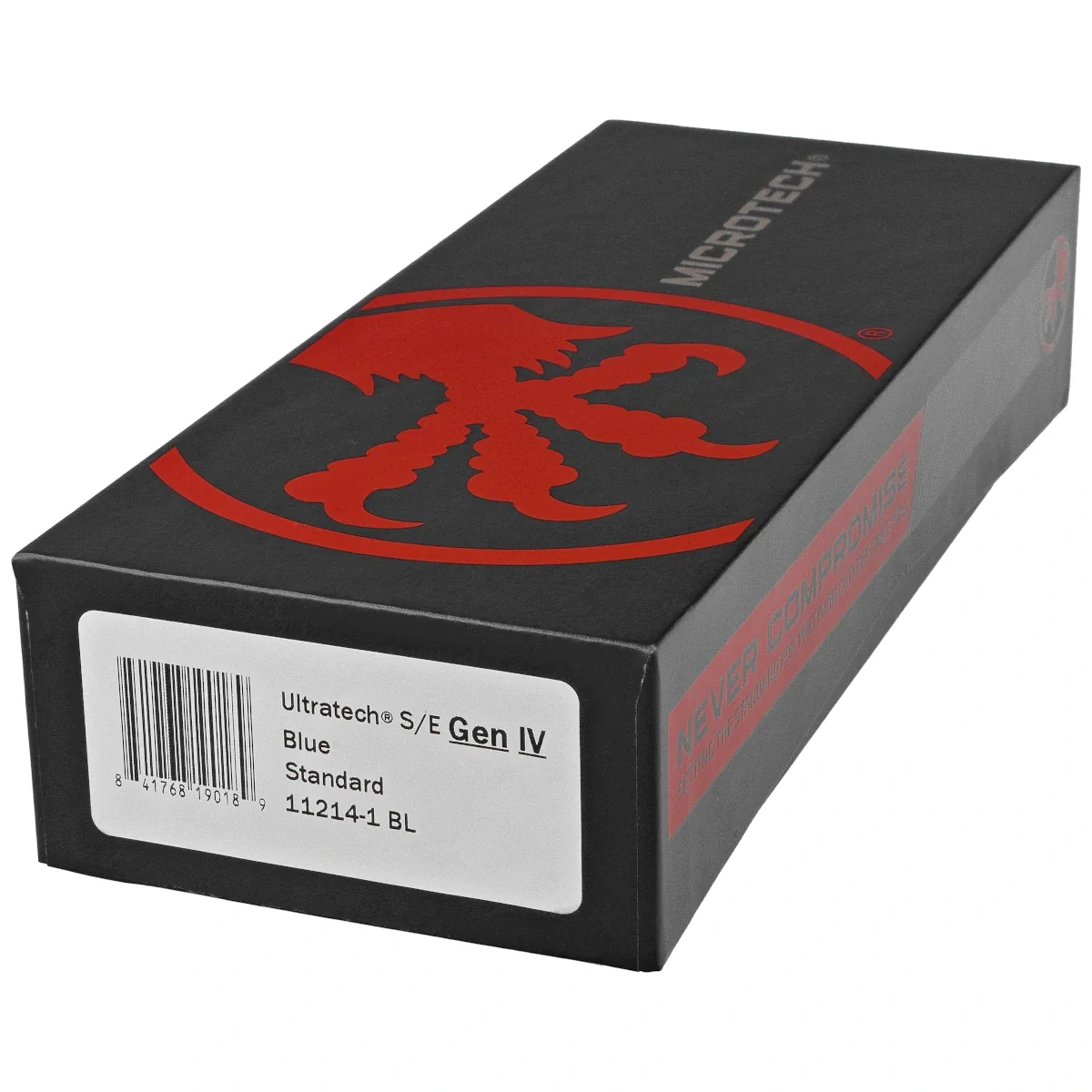 Ultratech Gen IV S/E Blue Aluminium, Black to pełnowymiarowy nóż automatyczny OTF (Out The Front) z serii Ultratech. Czwarta generacja wyróżnia się szeregiem usprawnień, takich jak; Crud Kutter™, Dual-Fuel Drive Train™. Przeprojektowano również rękojeść, wyposażając ją w rozwiązania znane z innych modeli. Pracujący w trybie D/A (Double Action), umożliwia błyskawiczne wysunięcie i schowanie ostrza za pomocą jednego ruchu kciuka. Projekt autorstwa Tony’ego Marfione, właściciela Microtech Knives, łączy w sobie nowoczesny design z najwyższą jakością wykonania.