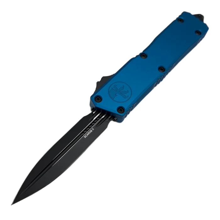 Nóż automatyczny OTF Microtech Scarab II Gen III Executive D/E Blue Aluminium, Black M390MK by Tony Marfione (1175-1BL)