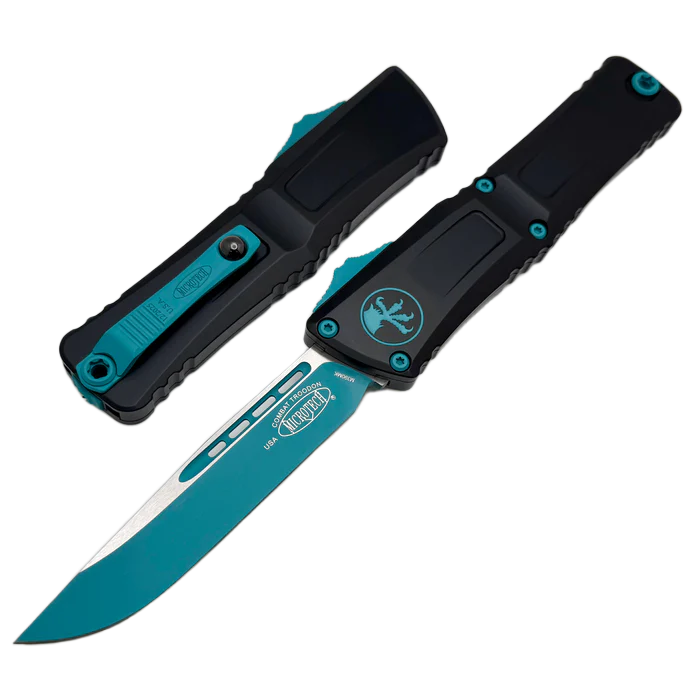 Combat Troodon Gen III S/E Black Aluminium, Turquoise ten największy z noży automatycznych, to szczyt precyzyjnej inżynierii i taktycznej sprawności w dziedzinie noży OTF (Out The Front). Zbudowany z myślą o szerokim spektrum zastosowań użytkowych, może pochwalić się większym o 25% rozmiarem w porównaniu do flagowego Troodona. Precyzyjnie wykonany, wyposażony w wyrafinowany i piekielnie szybki mechanizm wysuwający ostre jak brzytwa ostrze. W 100% wyprodukowany i zmontowany w USA. Projekt Anthony'ego Marfione, knifemakera i właściciela Microtech Knives.